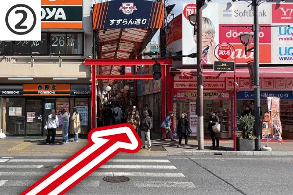 ②階段を降りたら、目の前にある「すずらん通り」のアーケードに入ります。