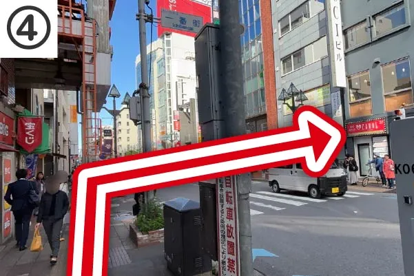 ③「すずらん通り」のアーケードを抜けたら左に曲がります。