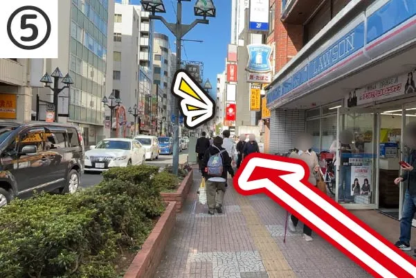 ⑤「ローソン」様を右手に見ながら直進します。
